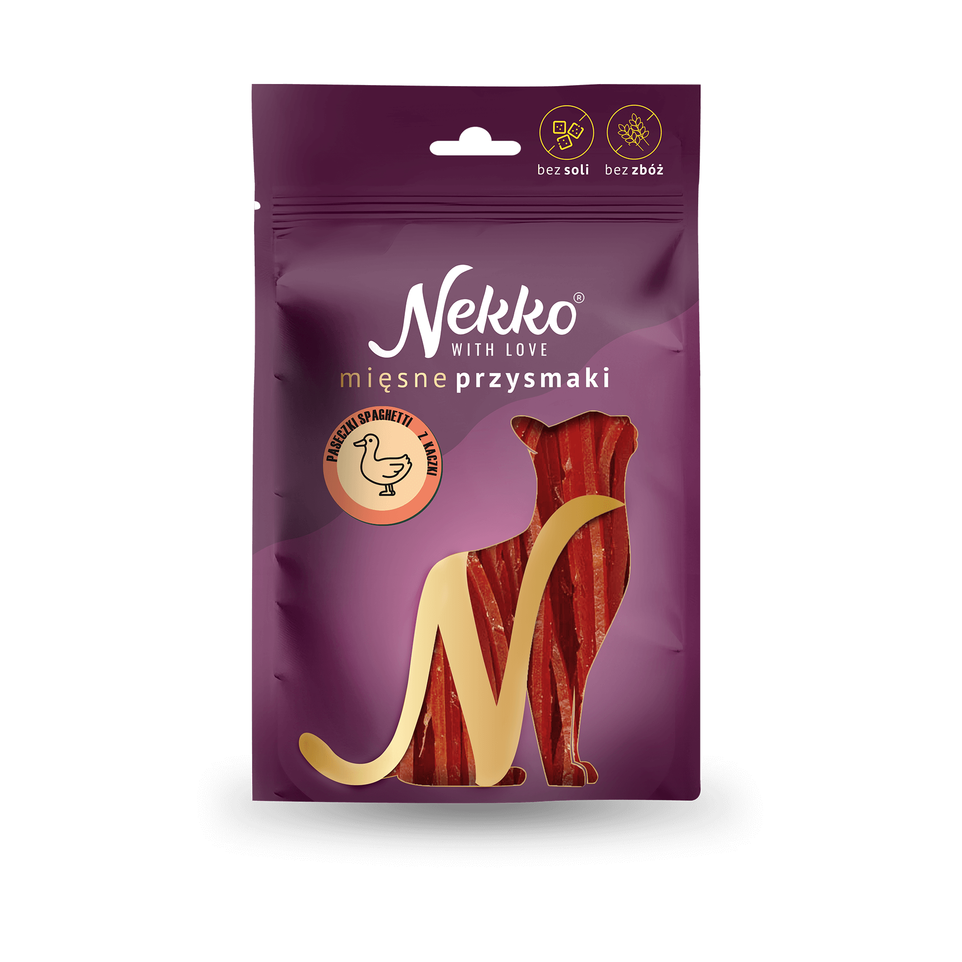 Soft duck spaghetti strips. Complementary feed for cats.