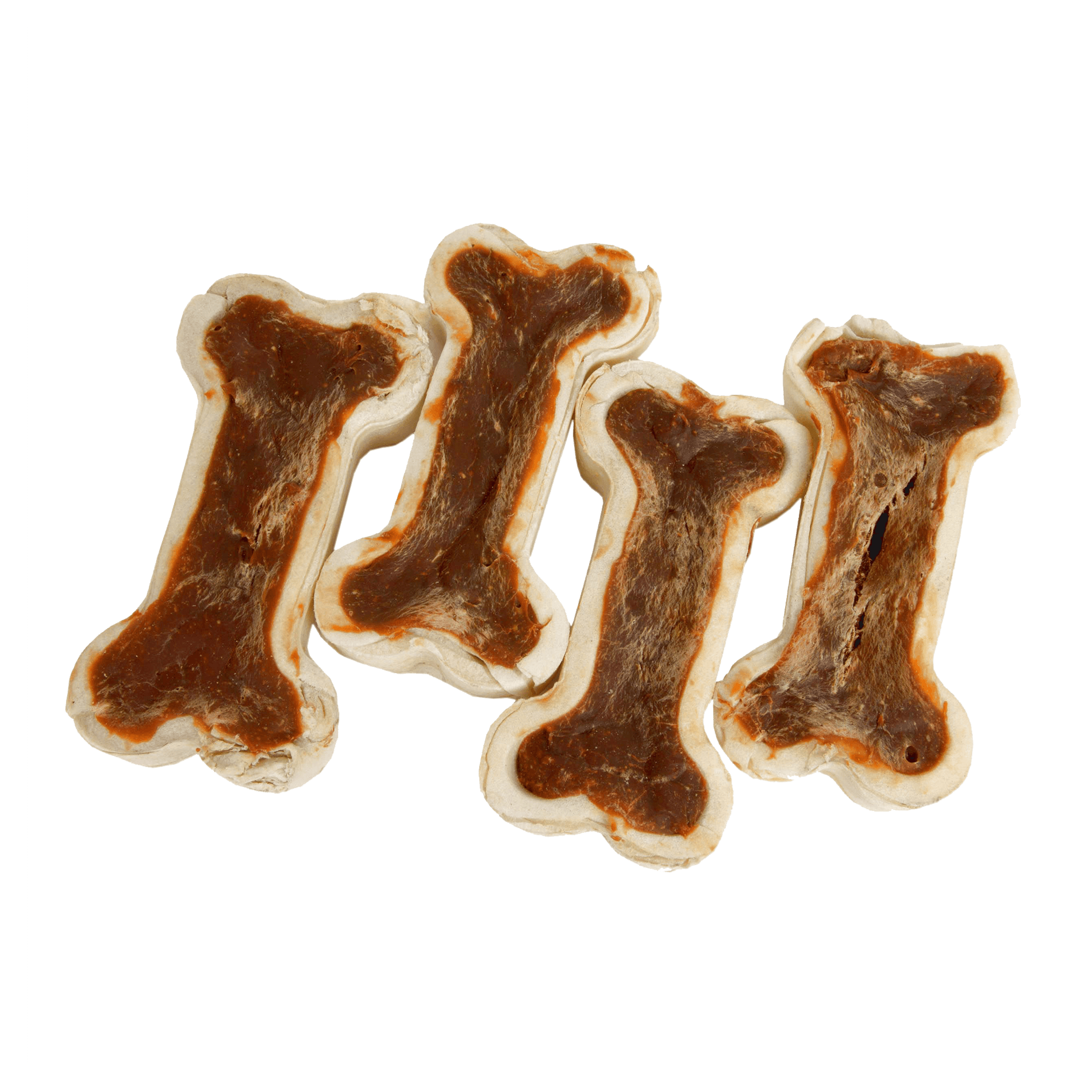 Rawhide bone and duck meat filling. Complementary feed for dogs.